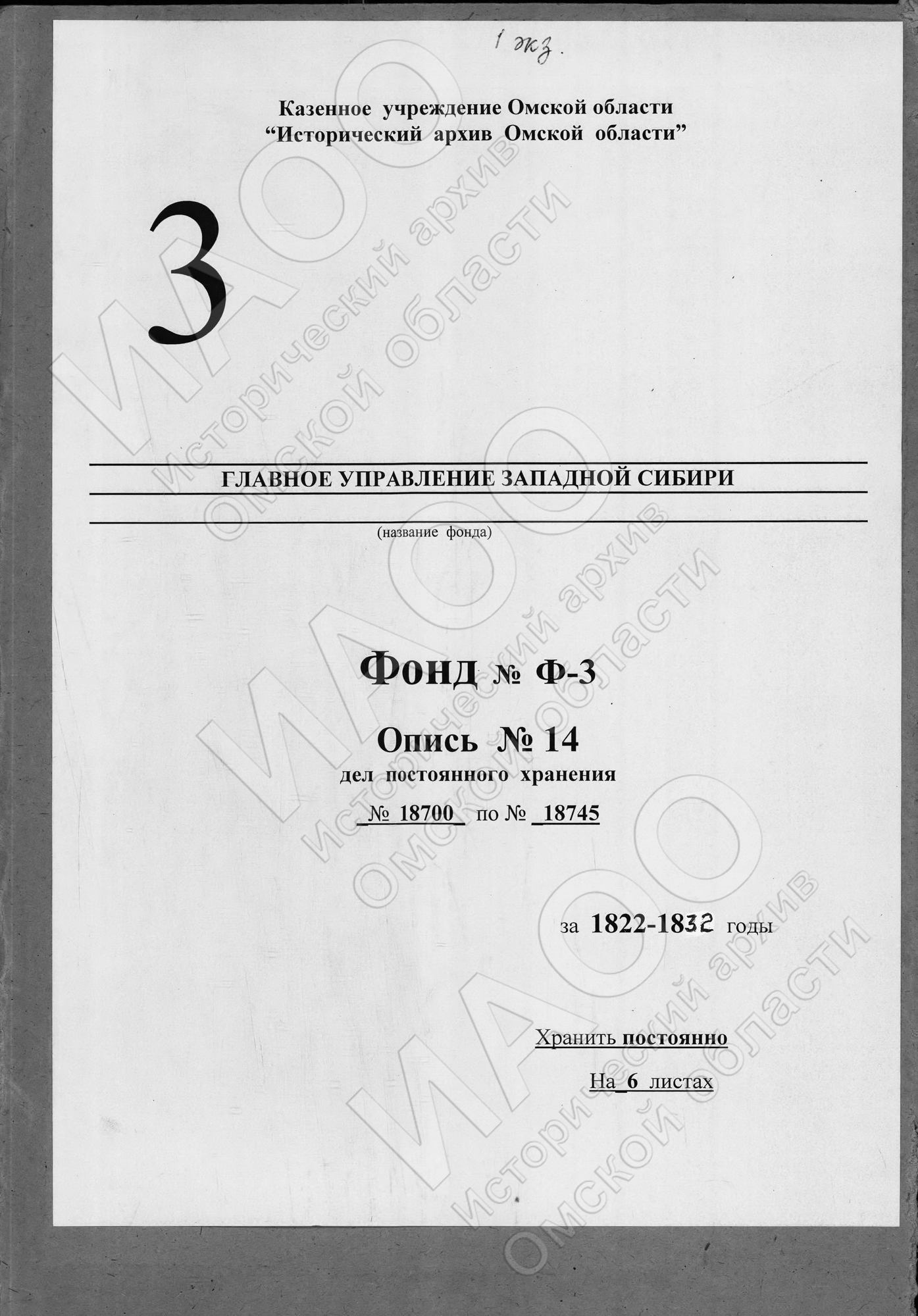 Крайние даты документов: 1822 — 1832 гг.